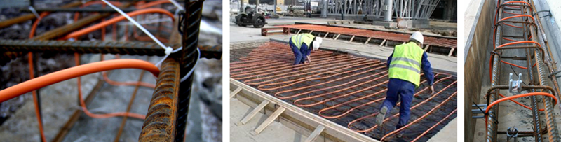 6. Завершение: После достижения требуемой прочности кабель обесточивается. Концы обрезаются заподлицо с бетоном; кабель остается внутри монолита.