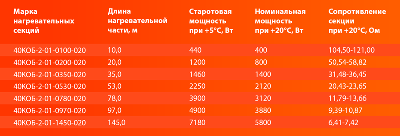 Секция нагревательная кабельная 40КОБ-2-01-0100-020