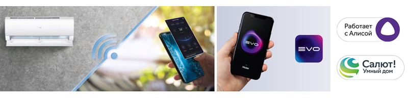 • Wi-Fi управление в базовой поставке — управление через приложение EVO, поддержка голосового управления Яндекс Алиса, Салют! Сбер