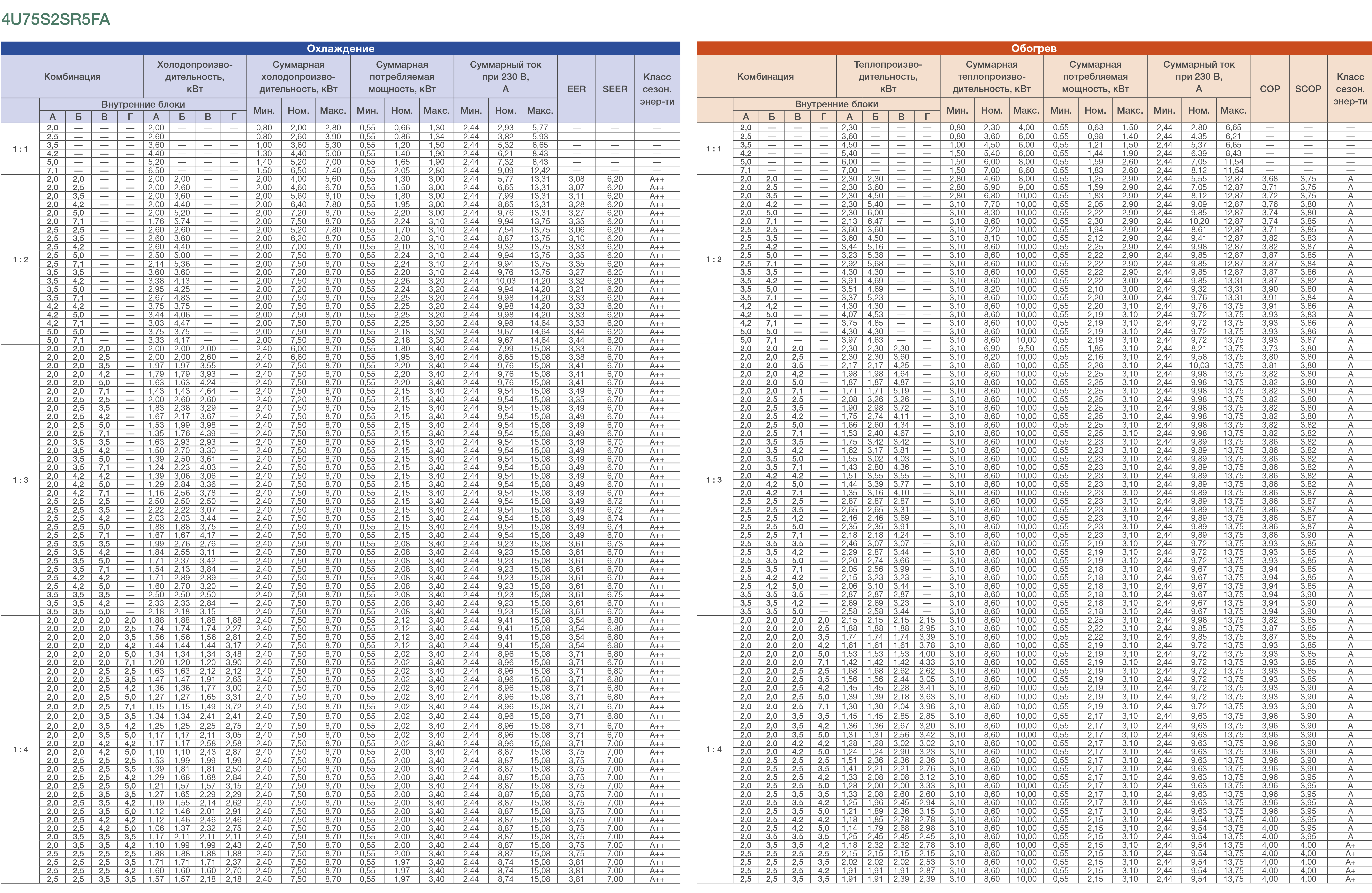 Рассчитан на подключение 4 внутренних блоков. Подобрать внутренние блоки для данной модели можно здесь.