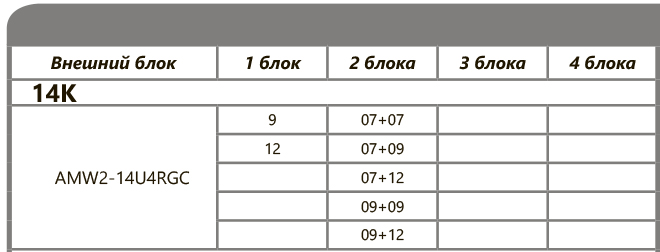 При подключении нескольких внутренних блоков, суммарная производительность которых превышает номинальную мощность наружного блока, при одновременной эксплуатации каждый из них будет работать со сниженной производительностью. Такой вариант подключения допускается в случае, когда внутренние блоки используются не одновременно (например, ночью – спальня, днем – гостиная).