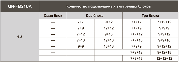 При подключении нескольких внутренних блоков, суммарная производительность которых превышает номинальную мощность наружного блока, при одновременной эксплуатации каждый из них будет работать со сниженной производительностью. Такой вариант подключения допускается в случае, когда внутренние блоки используются не одновременно (например, ночью – спальня, днем – гостиная).