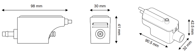 • Габариты (блок насоса): 90 x 30 x 41 мм