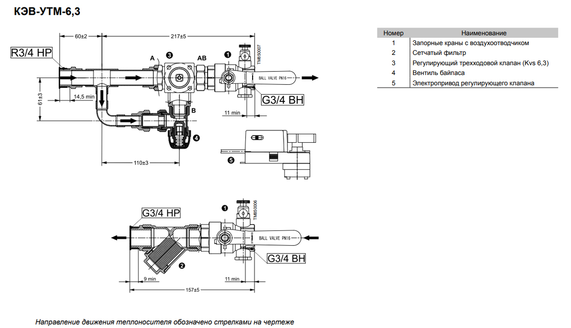 • При полностью закрытом клапане, регулирующий байпас обеспечивает постоянный проход воды, во избежание замерзания теплоносителя.