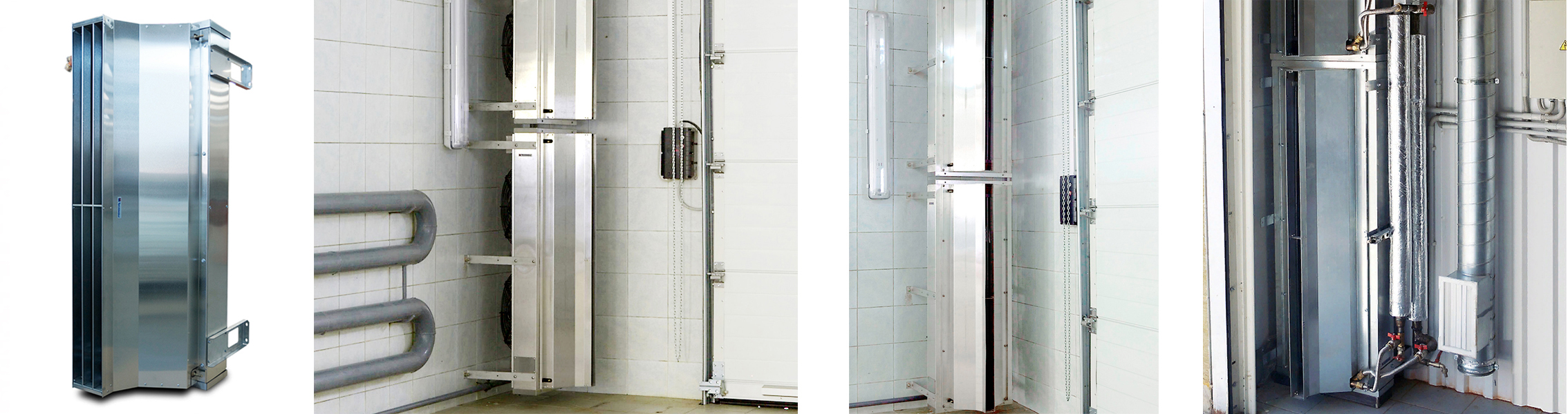 Промышленная тепловая завеса шиберующего (отсекающего) типа из нержавеющей стали с защитой корпуса IP54 (допускается капельная влага, туман). Устанавливается внутри помещения, горизонтально над проемом или вертикально, сбоку от него, как можно ближе к краю. При большой ширине проема можно располагать сразу несколько завес вплотную друг к другу и управлять ими с одного пульта. Применяется в складских помещениях, гаражах, производственных предприятиях, ангарах, самолетных и вертолетных площадках, автомойках и других помещениях большой площади.