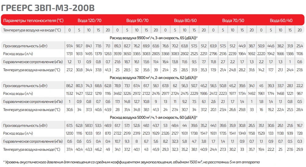 градусов С на выходе, при "t" воды 90/70 °С