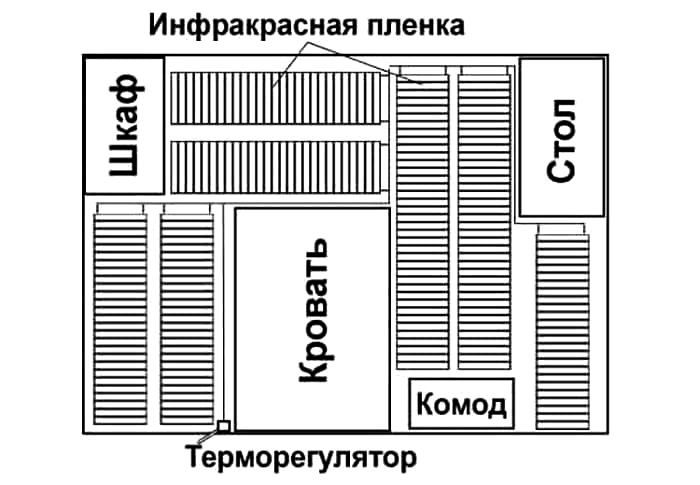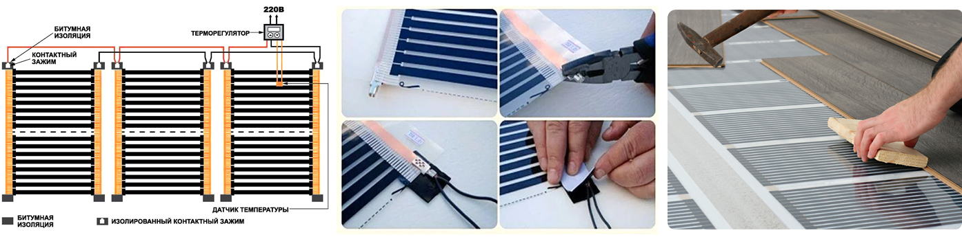 Схема монтажа пленочного пола: