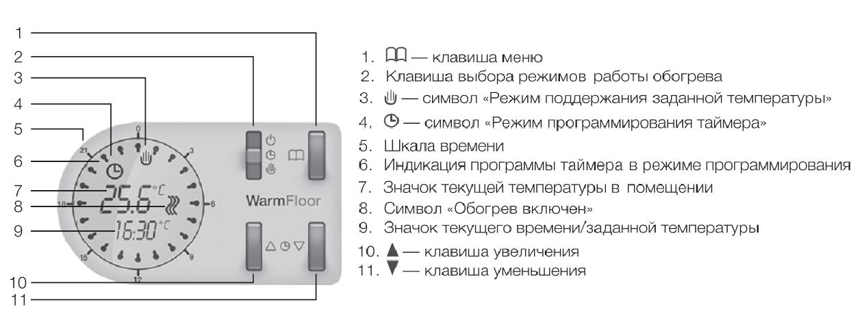 Программируемый электронный терморегулятор позволяет устанавливать индивидуальные температурные режимы на каждый час в течение суток.