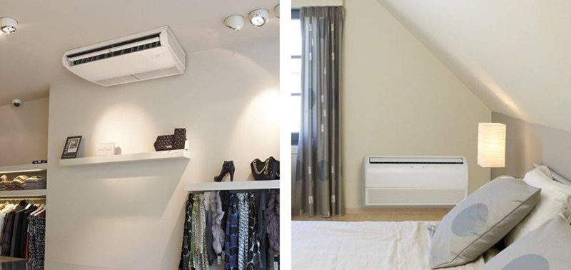 Универсальные (напольно-потолочные) сплит-системы предназначены для использования в больших нежилых помещениях: офисы, магазины, рестораны, конференц-залы, спортивные, учебные, медицинские учреждения и др. Также они подходят для помещений со сложной планировкой. Установка внутренних блоков выполняется под потолком или на полу, рядом со стеной.