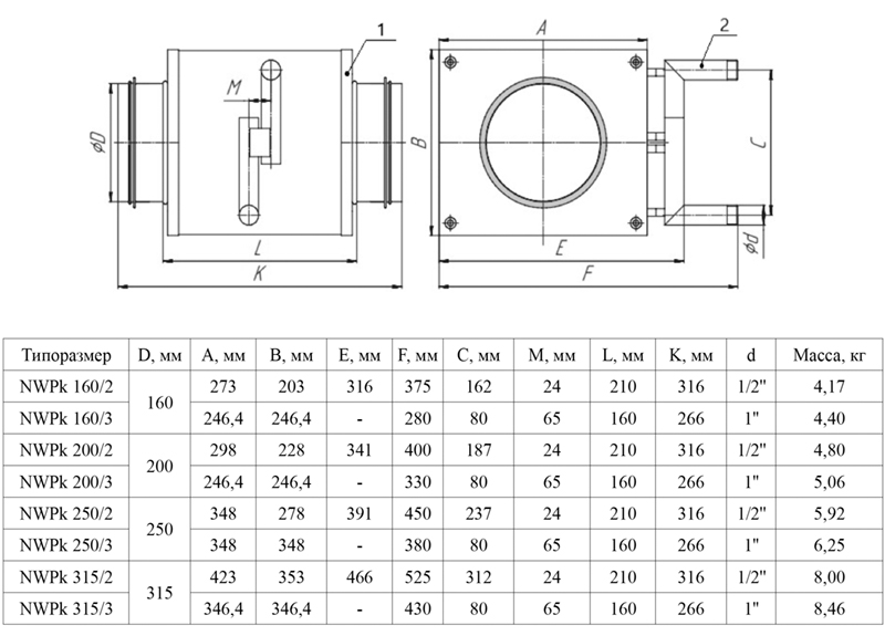 Габаритные и присоединительные размеры NWPk: