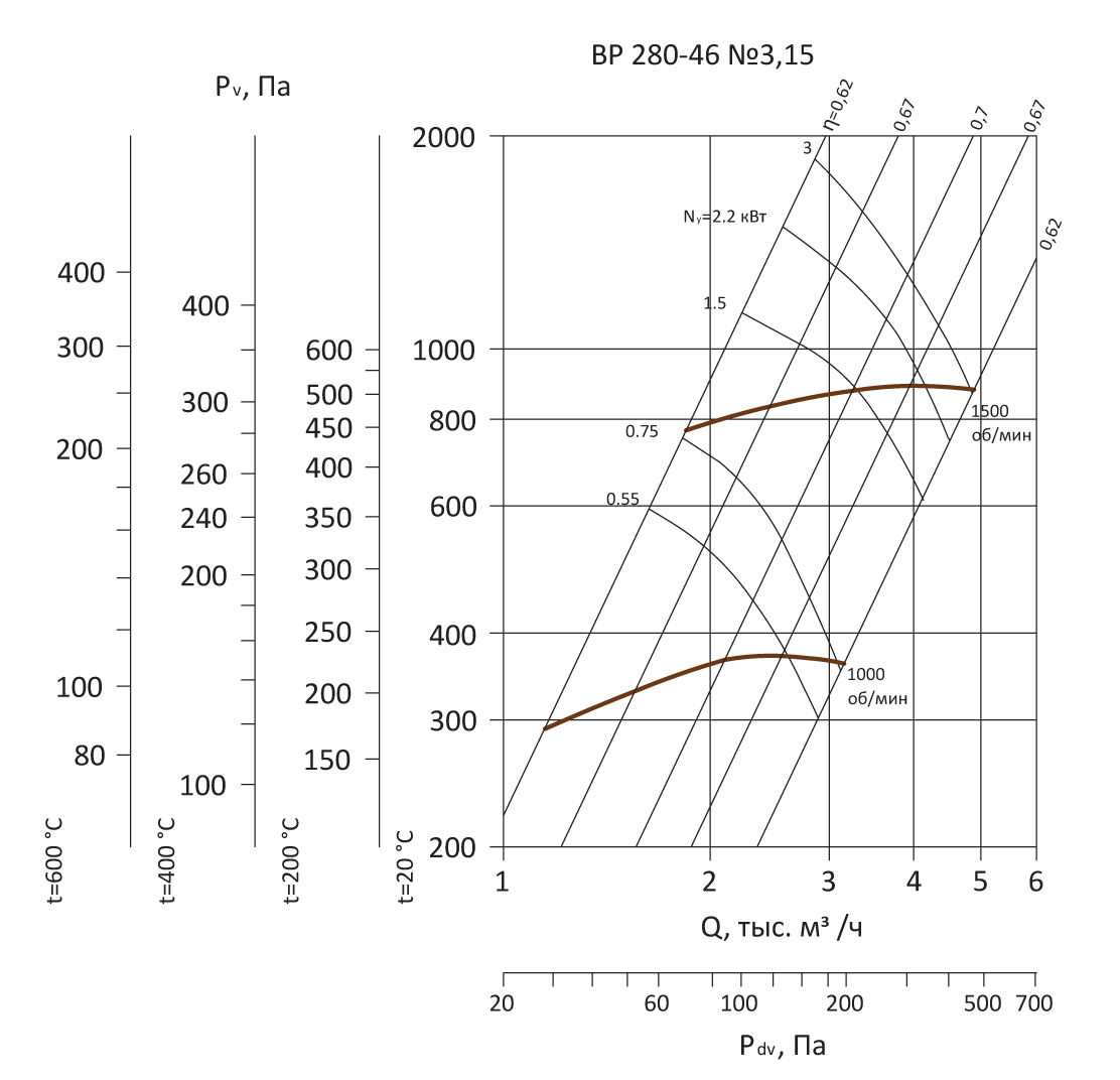 Радиальный вентилятор среднего давления ВР 280-46 / №3,15 / 0,55 кВт / 1000 об./мин. / Прав / 0°
