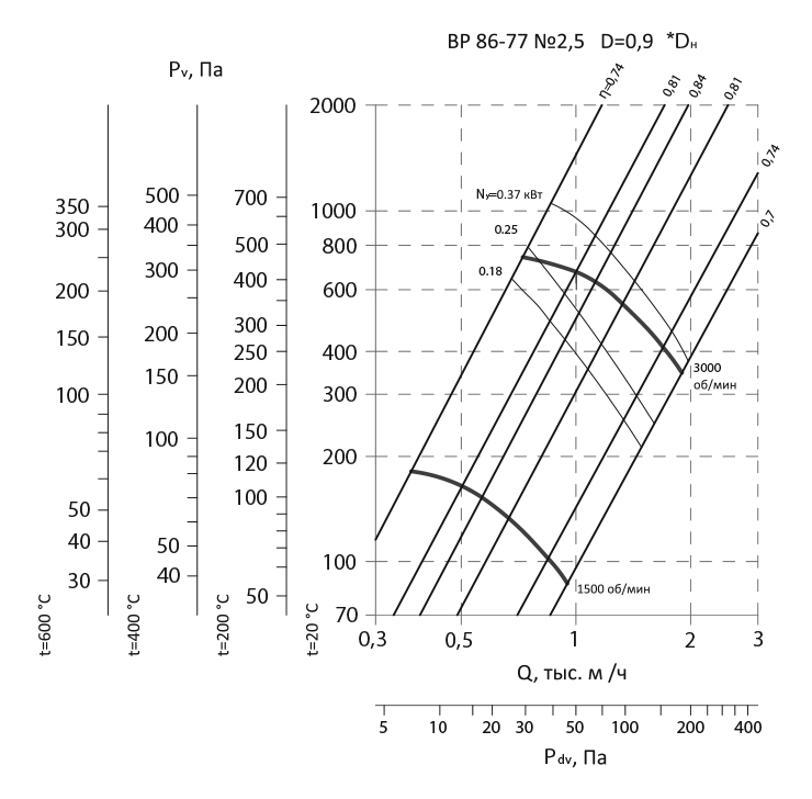 Радиальный вентилятор низкого давления ВР 86-77 / №2,5 / 0,37 кВт / 3000 об./мин. / Прав / 0°