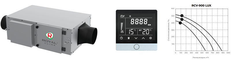 Приточная вентиляционная установка Royal Clima RCV-900 LUX + EH-6000